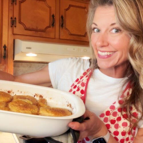This dish takes me right back to my childhood! These apple dumplings were my favorite dessert that my Granny Austin would make. For some reason I’ve let the idea of peeling and coring apples keep me from cooking with them. No more! I got a super duper easy to use apple peeler/corer (linked here) that made that step not only easy, but fun. If you’ve never made these, what are you waiting for? I promise they will be a hit to anyone you serve them to (or just make for yourself – yourself will thank you.) Don’t forget the vanilla ice cream (or whipped topping – but honestly, just go for the ice cream if you can.) If you make these, let me know what you think. Happy cooking!
